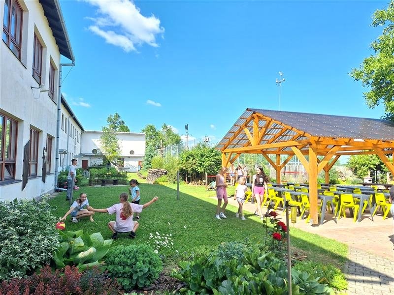Postupně přibývaly další prvky a biotopy – pěstitelské záhony, kompost, ještěrkoviště, trvalkové záhony, vodní jezírko, květnatá louka, bylinková zahrádka a keře drobného ovoce. Práce s rostlinami a drobným ovocem obohacuje výuku o smyslové poznávání. Děti mají možnost ochutnávat vlastní výpěstky, vnímat jejich vůni i chuť, a spojovat si tak nové poznatky s konkrétním zážitkem. Takové učení zapojuje více smyslů a nabízí zkušenosti, které běžná výuka v lavicích ve třídě poskytnout nemůže.